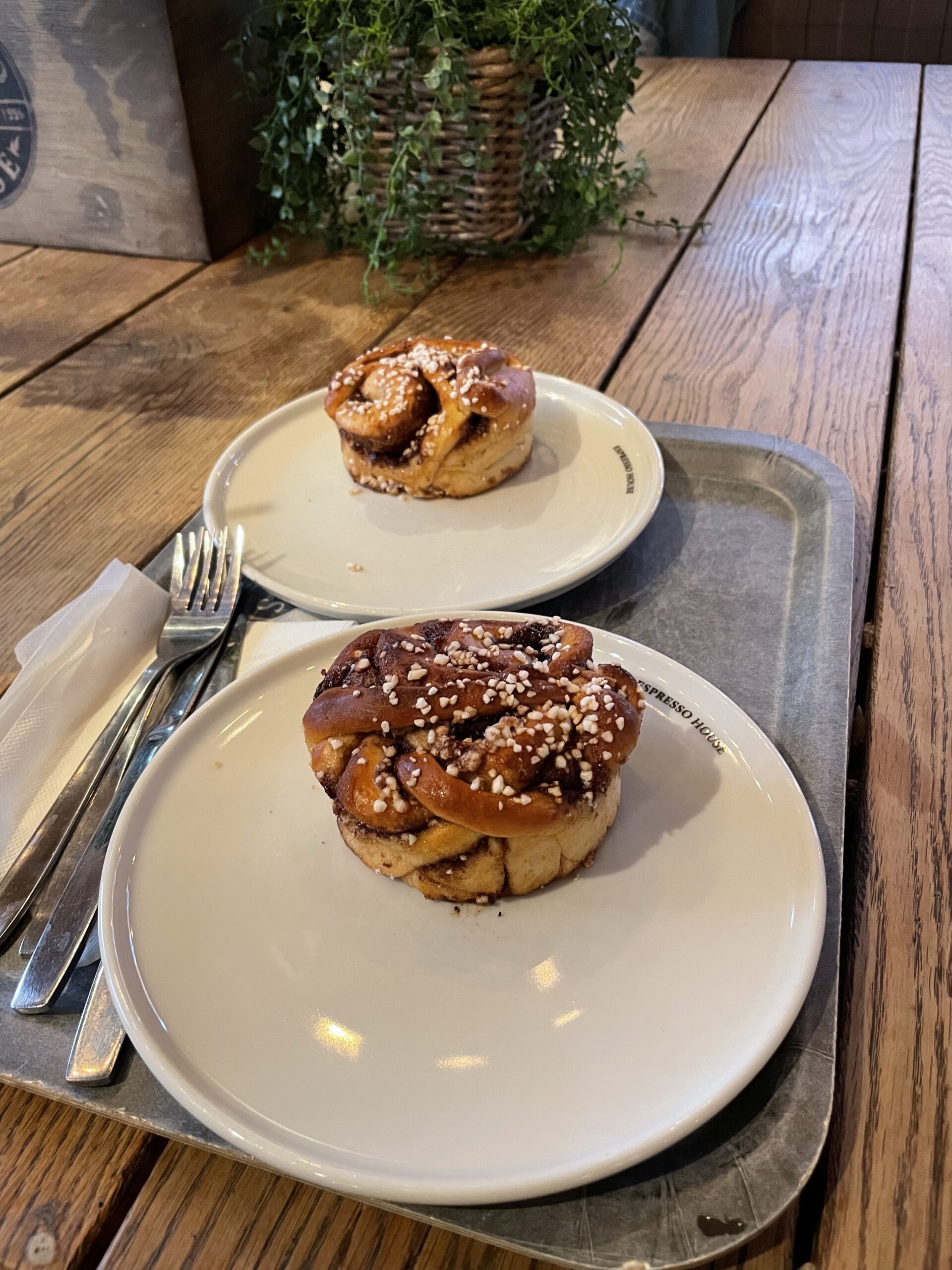 次に紹介するのはKanelbullar(カーネルブッレと読みます。)。スウェーデン伝統のシナモンロールです。外はこんがり、シュガーコーティングがサクサクです。そして一口かじろうと手元に運んだ瞬間にふわっと入り込むシナモンの香り!こんなにもシナモンが輝く場所を私は知りません!手のひらよりも大きいサイズでしたがあっという間にペロリと食べれてしまいました。この写真はEspresso House というカフェチェーン店で食べた時のものですが、国中いたるところで手軽に食べられます。
